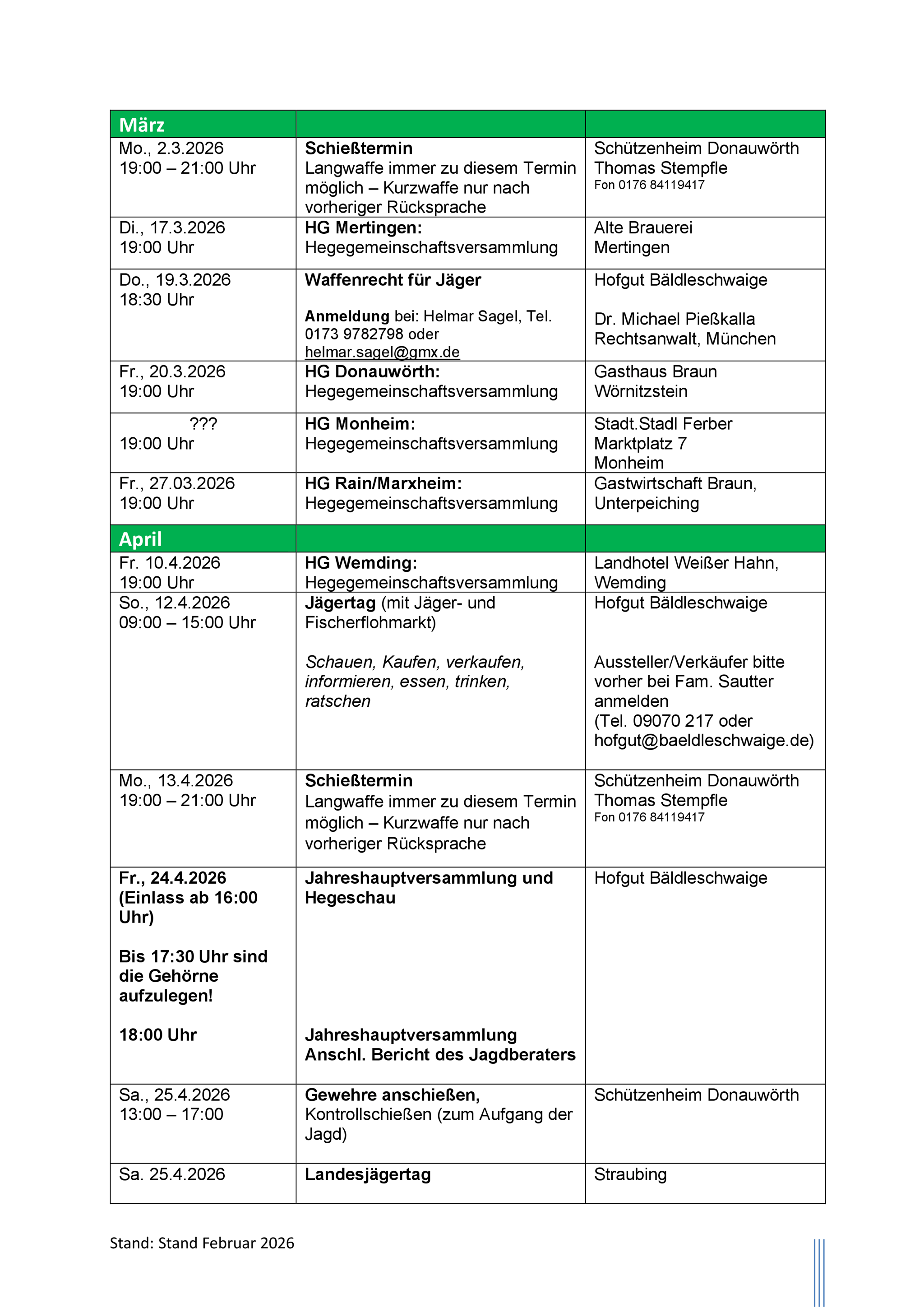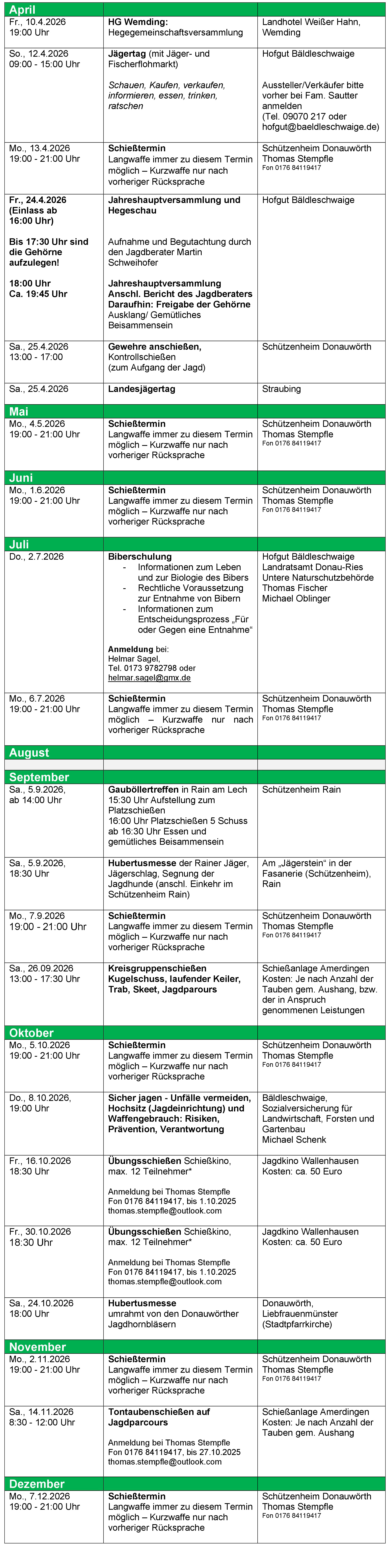 Hier sind die aktuellen Jahrestermine.