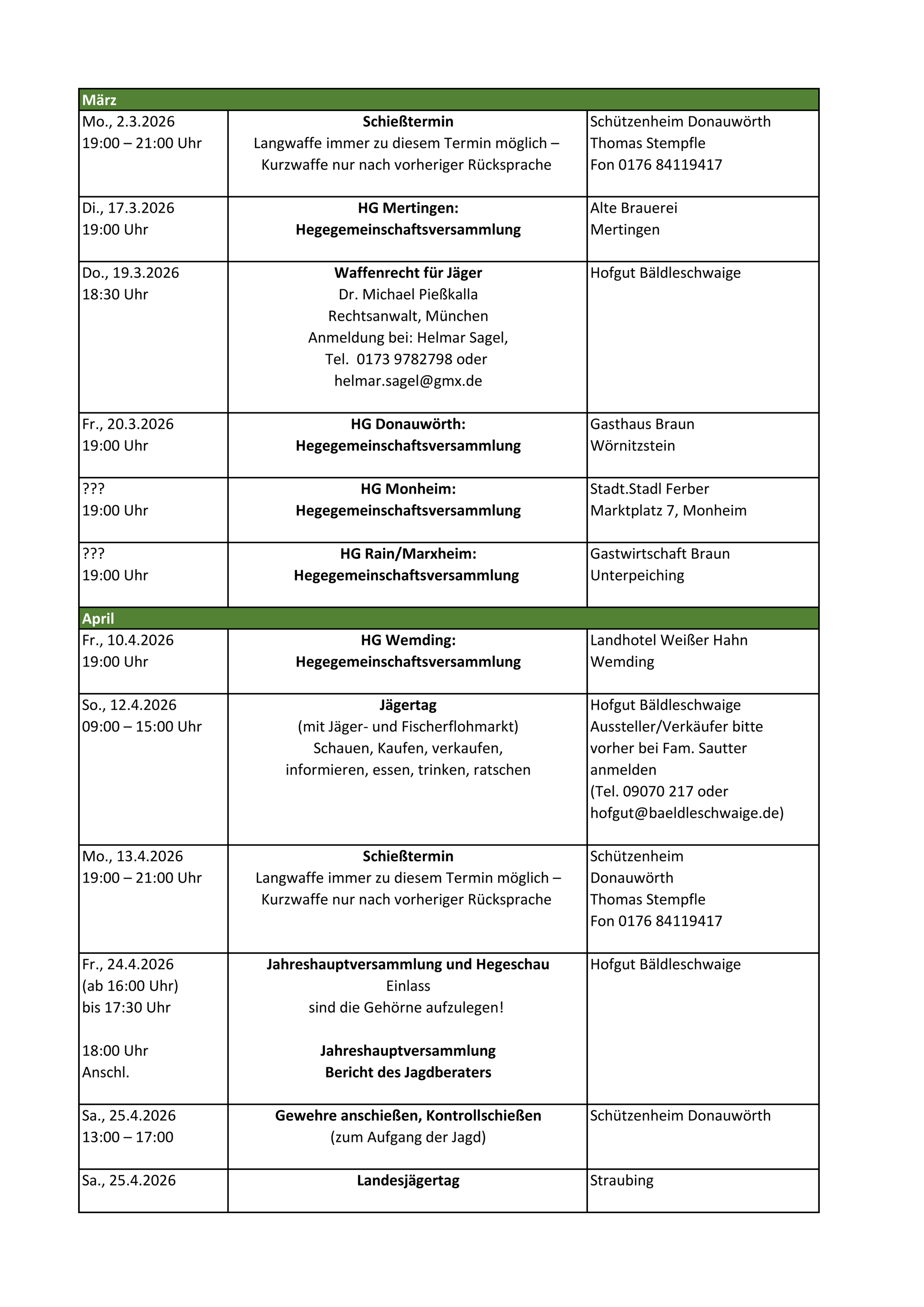 Hier sind die aktuellen Jahrestermine.